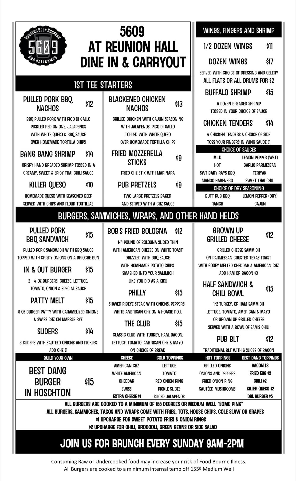 Food Served Monday 10:00 AM - 5:00 PM ....Bar Open until 8:00 PM